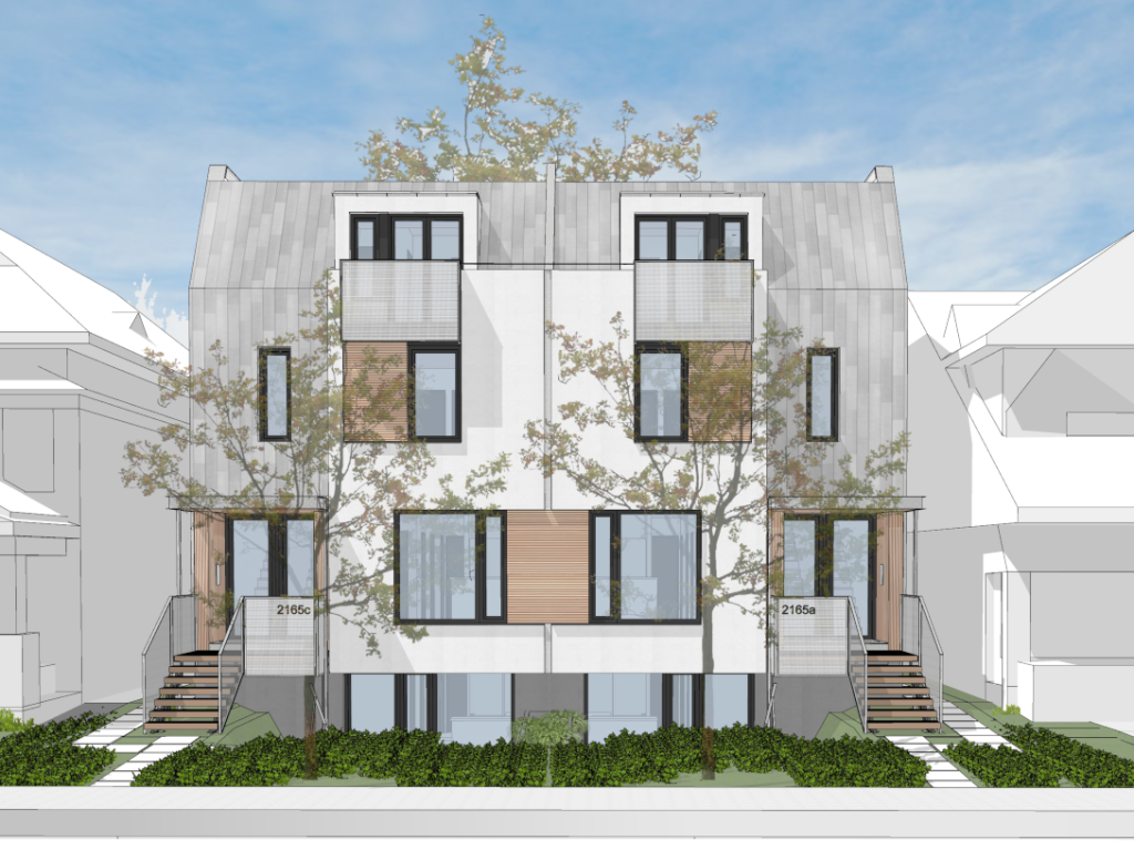Our Healthy House project includes two semi-detached fourplexes, each with four two-bedroom apartments and a three-bedroom laneway house at the rear. In all, there are ten suites in the development, all with in-suite laundry and two bathrooms, and no unit is smaller than 900 sq. ft. Each suite will have direct access to the street, and there will be yard access or large private balconies in every unit.